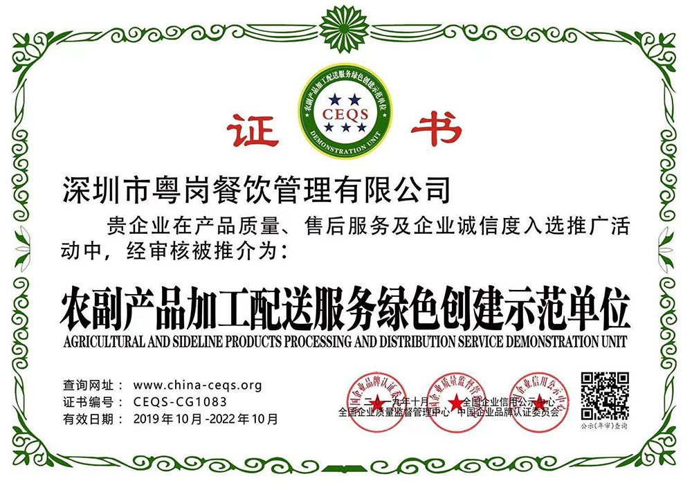 深圳市粵崗餐飲管理有限公司,是一家集蔬菜種植和農副產品配送為一體的專業(yè)型餐飲公司,主要為學校、工廠企事業(yè)機關單位提供蔬菜和農副產品配送服務。公司自成立以來始終以質優(yōu)價廉、服務至上為原則,嚴格按照ISO:9001國際標準體系進行管理。同時建立了行業(yè)領先的配送中心、大型冷庫和保鮮庫、檢測中心以及專業(yè)化的配送團隊,能長期安全、穩(wěn)定、準時的配送貨物。我們所有蔬菜均經過初步加工、無黃葉,無泥沙等雜質,利用率達97%以上...保障向用戶提供的各類食材的衛(wèi)生和質量。公司為了適應不同客戶的需求,配有專業(yè)人員和配送車輛,實行“一對一”的服務體制,一心一意的為客戶服務,秉承粵崗誠實守信、服務第一、客戶至上的服務標準,真正讓客戶花最少的錢吃最好的菜?;泹彾嗄陙砗我孕佬老驑s,因為我們知道只有勇于擔當責任,才能承擔更大的責任,就是因為 粵崗員工貫徹公司態(tài)度決定一切、細節(jié)決定成敗的真理,從質量抓起,從服務做起,才創(chuàng)造了如今的規(guī)?;?、統一性配送、專業(yè)化服務的粵崗。